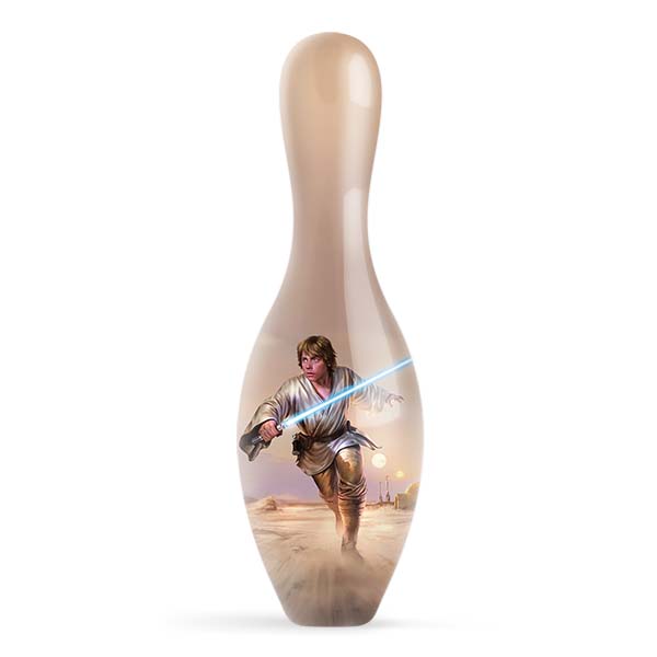 Star Wars Jedi hero Luke Skywalker is featured on this regulation size bowling pin.
