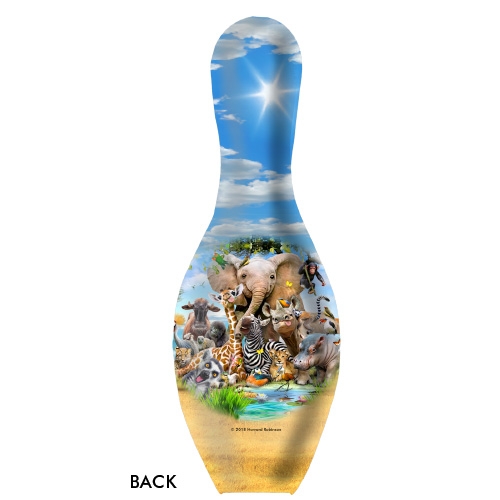 The African Animals Selfie bowling pin is regulation size.