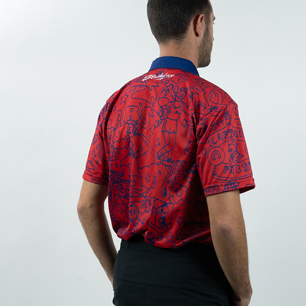 This high-tech Pabst Blue Ribbon jersey is durable and made from moisture-wicking fabric. It has a sash collar with a 3/4 zip front. The colorful design is dye-sublimated. The jersey is washable in cold water. For best results, not use bleach or fabric softener, air dry. Do not use abrasives to clean the shirt, as they may snag the fabric. The jersey is proudly made in the USA. See chart below for sizing information.