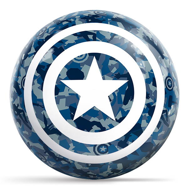 • Show your love for Marvel out on the lanes with this cool bowling ball. This design features the Captain America camo shield