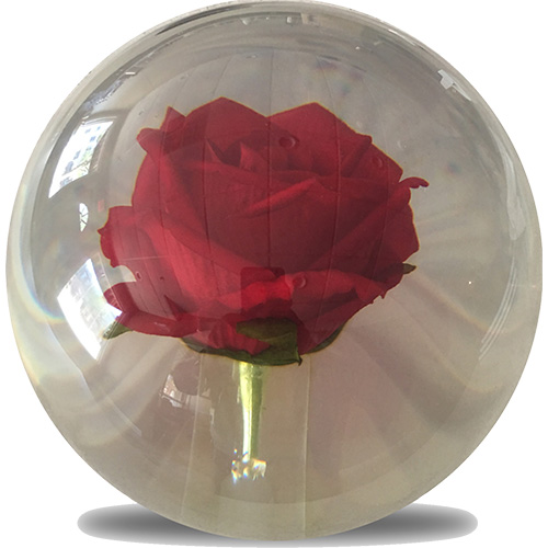 This ball features a beautiful 3D rose encased in clear polyester. The rose ball is available in 14.5 lbs only.