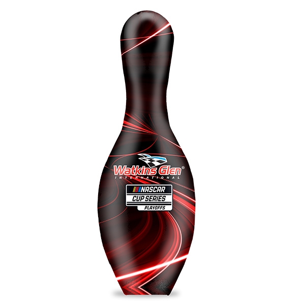 This special edition NASCAR GoBowling At The Glen regulation size bowling pin commemorates the 2024 NASCAR Cup Series Race held at Watkins Glen International Raceway on September 15, 2024.