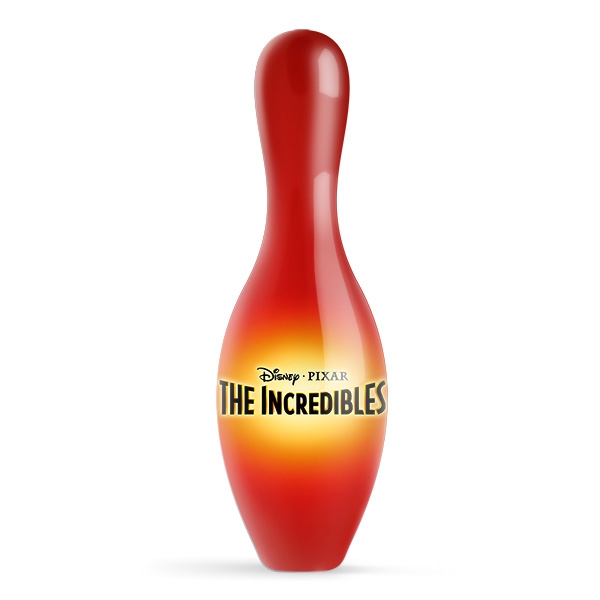 This Disney Incredibles Parr Family characters bowling pin is regulation size.