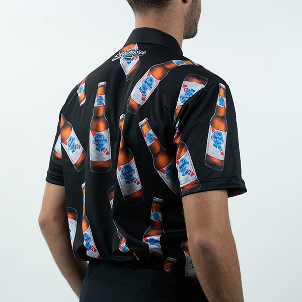 This high-tech Pabst Blue Ribbon jersey is durable and made from moisture-wicking fabric. It has a sash collar with a 3/4 zip front. The colorful design is dye-sublimated. The jersey is washable in cold water. For best results, not use bleach or fabric softener, air dry. Do not use abrasives to clean the shirt, as they may snag the fabric. The jersey is proudly made in the USA.