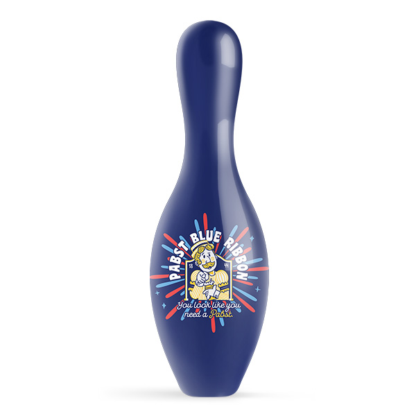 This Pabst Blue Ribbon bowling pin is regulation size.