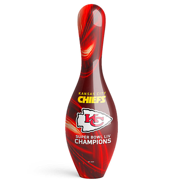 Celebrate the Super Bowl LIV Championship of the Kansas CIty Chiefs with this special edition championship regulation-size bowling pin.